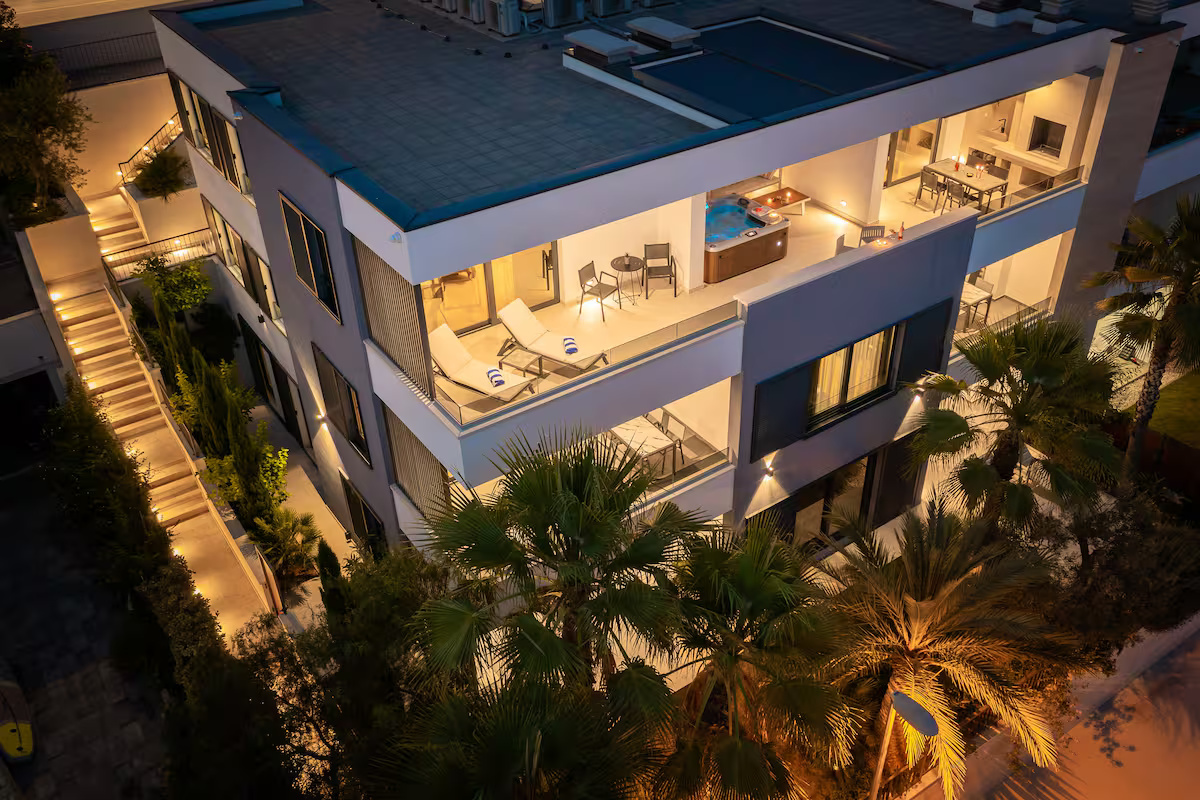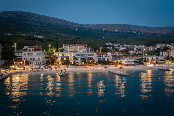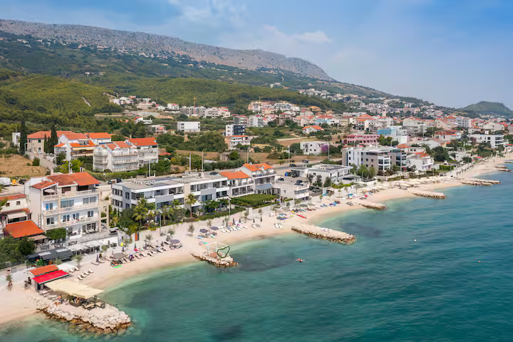 Experience beachfront living at its finest at Paoma Lux Beach Suites in Podstrana. These 4-star suites feature air-conditioned interiors, full kitchenettes, and private balconies with stunning sea views, all complemented by exclusive, reserved deckchairs right on the beach.